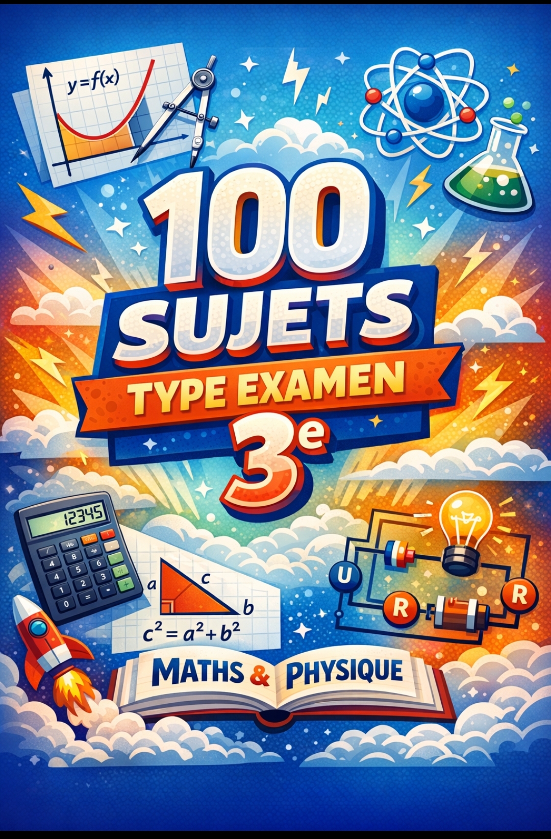 Titre : 100 Sujets Type Examen 3ᵉ – Mathématiques & Physique : Cours, Exercices et Corrigés